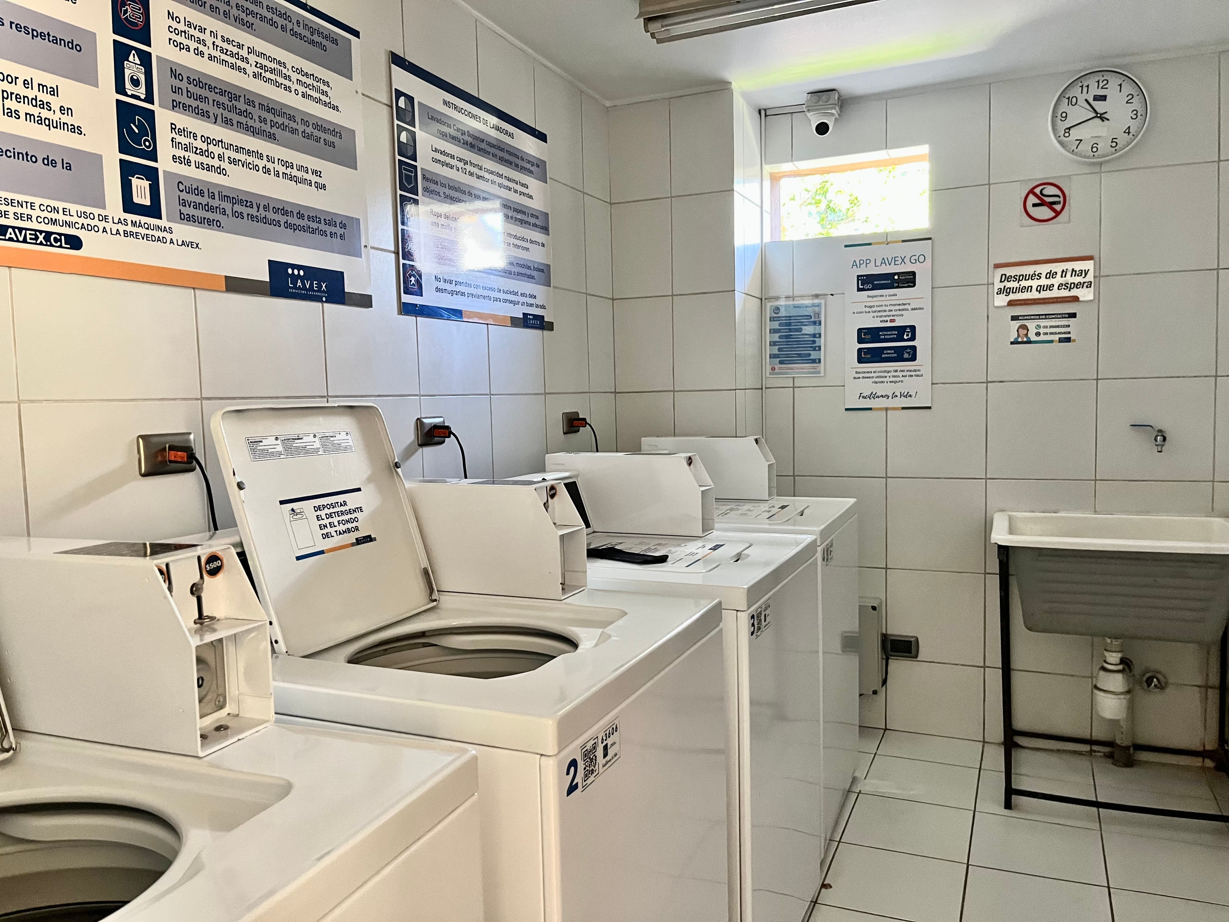 "Lavandería del edificio fácil de pagar y económica, con detergente listo en el departamento para tu comodidad"